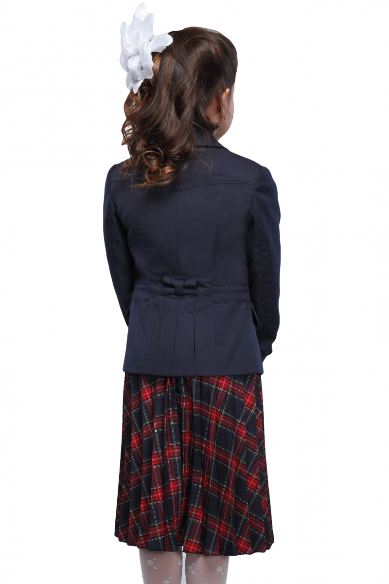 Пиджак с отложным воротником, длинными рукавами с манжетами, застегивается на пуговицы. Изделие дополнено двумя карманами с клапанами в горизонтальную складку. Хлястик на спине создает приталенный силуэт.