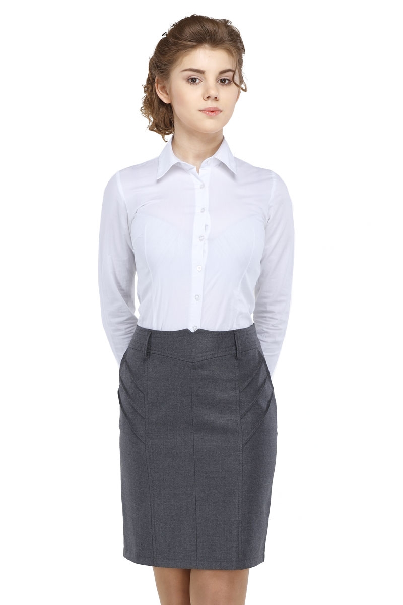 Стильная школьная юбка прямого силуэта. Линия талии подчёркнута фигурным поясом со шлевками. Изделие дополнено двумя боковыми карманами и двумя карманами сзади с клапанами на пуговицах. Изделие застегивается на потайную молнию сбоку. Боковые карманы декорированы фигурными рельефами, которые подчеркивают девичий силуэт.