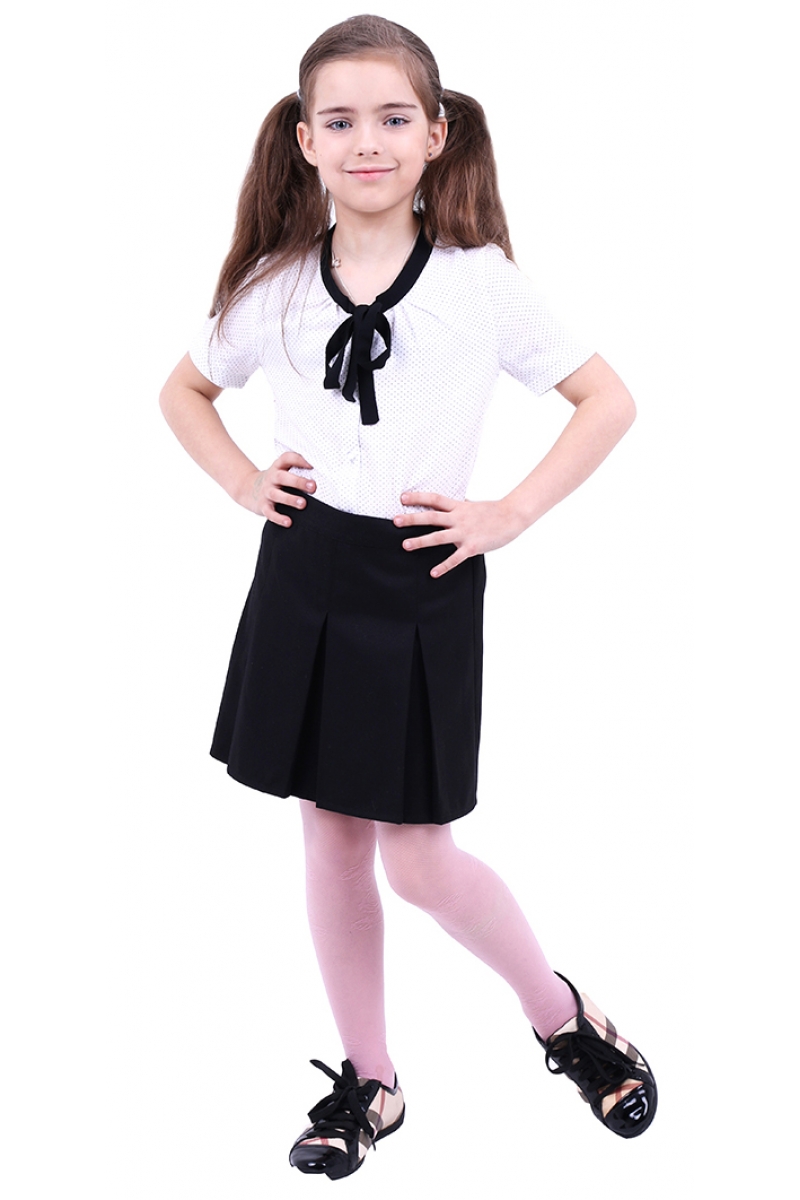 Оригинальная школьная юбка - трапеция, спереди украшенная продольными складками. Ширина талии регулируется за счет пуговиц и резинки. Износостойкая ткань, отличный вариант для ежедневного использования.